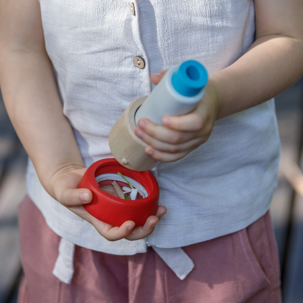View the world through an artistic lens with the wooden Kaleidoscope! Little ones can put their favorite objects inside and experience a swirling explosion of brilliant colors. They can also explore objects around them and see what they discover through the lens. As educational as it is entertaining, this kaleidoscope fosters creativity, imaginative thinking and curiosity.