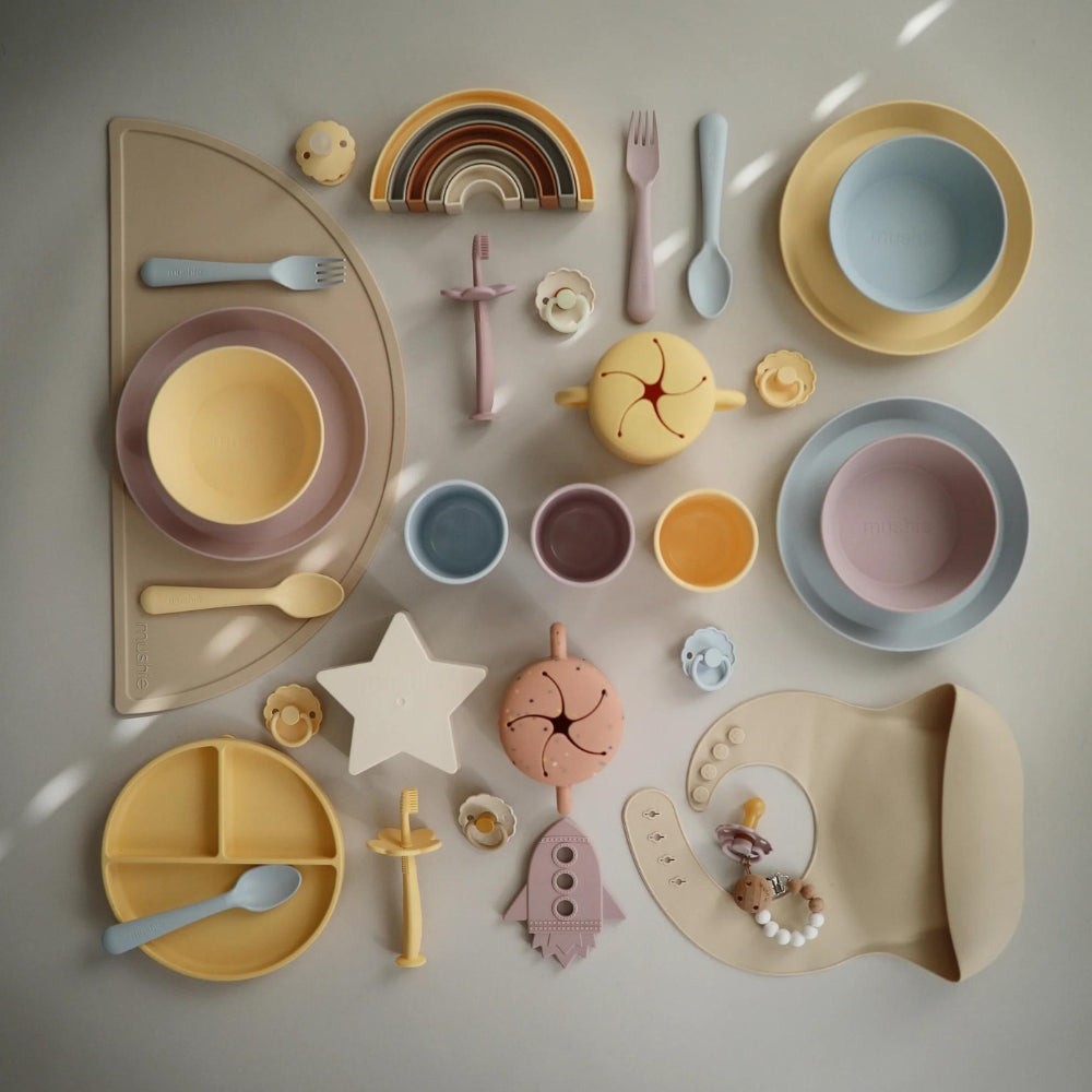 Mushie -儿童圆餐盘 2件套 - Caramel