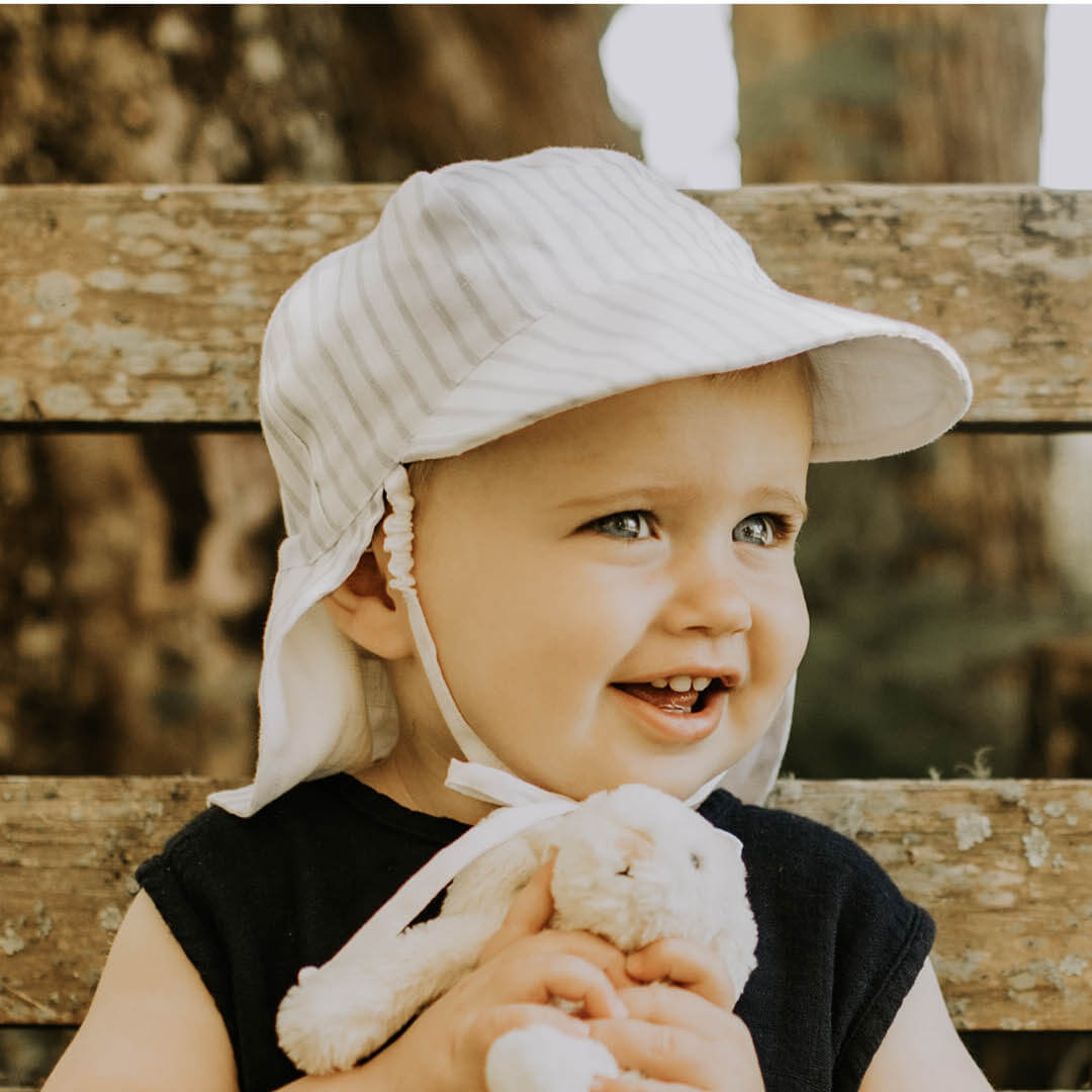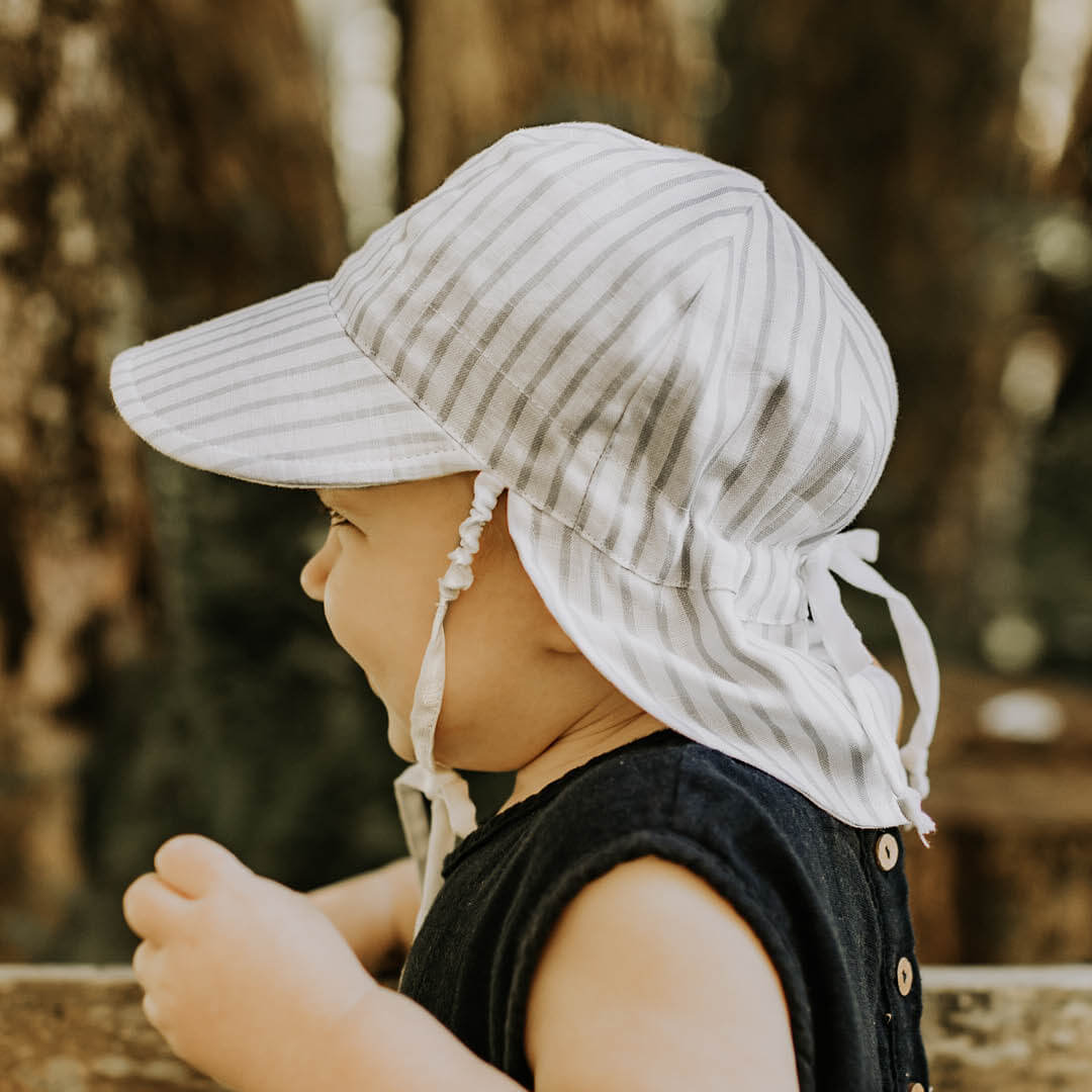 Bedhead Heritage Lounger Baby Flap Hats are light on heads, making them the ideal first hat for babies as they forget they’re wearing them! The soft flap lies flat behind baby’s neck while they’re in a pram or baby carrier, and the brim is slightly upright letting them see the world. Made from 100% eco-friendly linen which can self-cool in summer and warm in winter, the Lounger hat provides UPF50+ sun protection without overheating little heads.