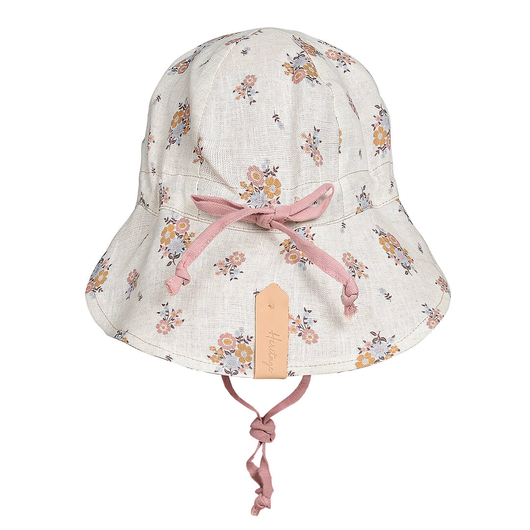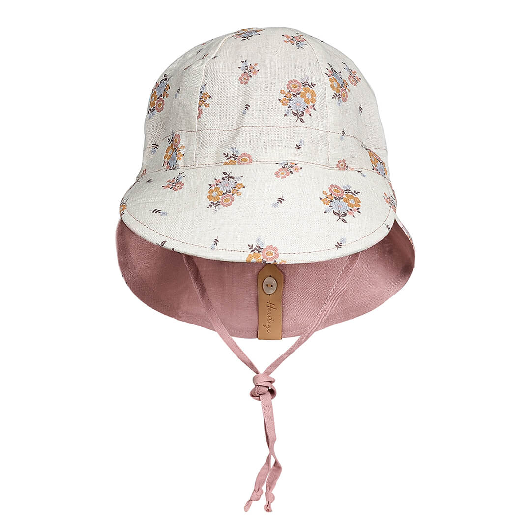 Bouquets of beautiful blooms you can smell if you close your eyes and imagine… This simple and sweet print is speckled over a simple flax base with a reverse of rosa pink for two hats in one.