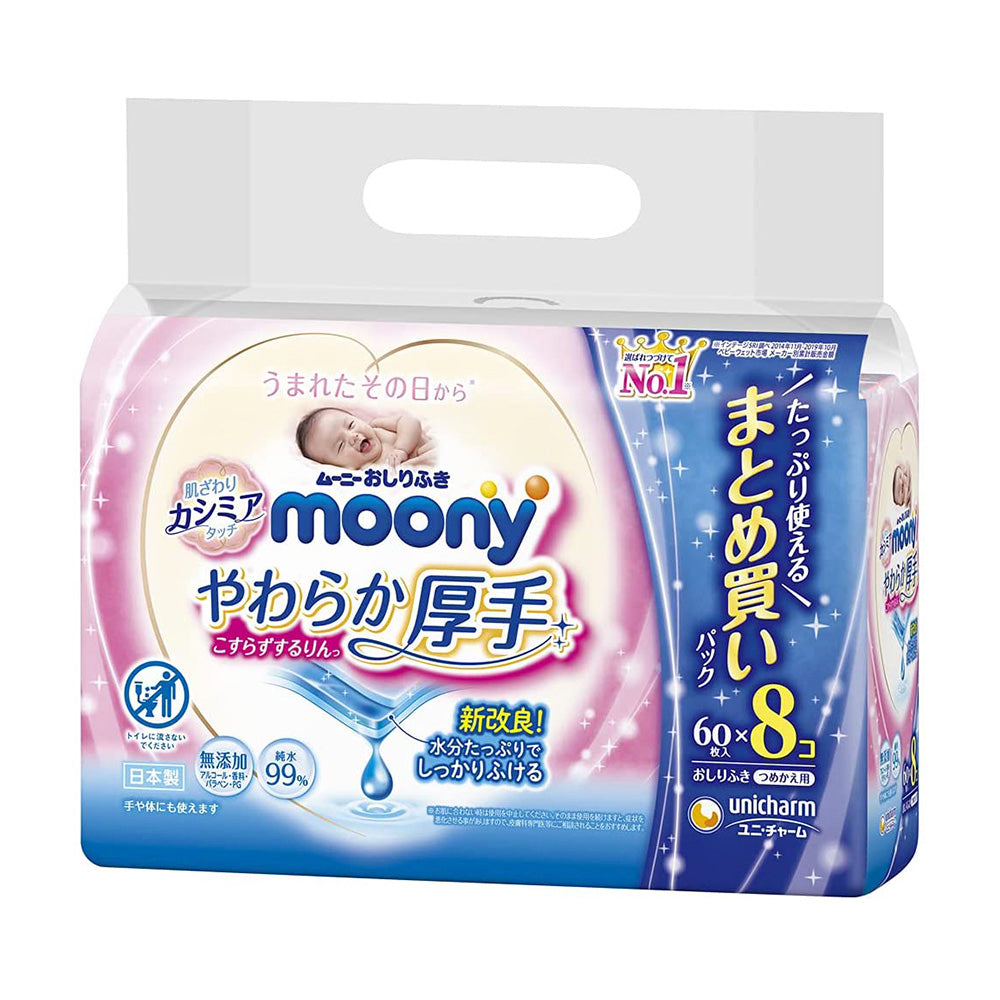 尤妮佳婴儿厚手型湿巾8包替换装 60枚/包
