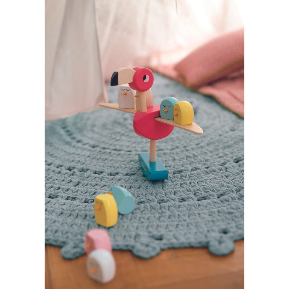 It's easy to get in a flap with the Janod Balancing Flamingo! Super cool, contemporary water colours and crafted from FSC certified wood, you don't need to play with it to see what all the fuss is about. Gently place your sleepy bird on the flamingos outstretched wings and keep stacking to see how many you can pile on before she topples over. You can also use the birds separately as a stacking game, counting as you go!