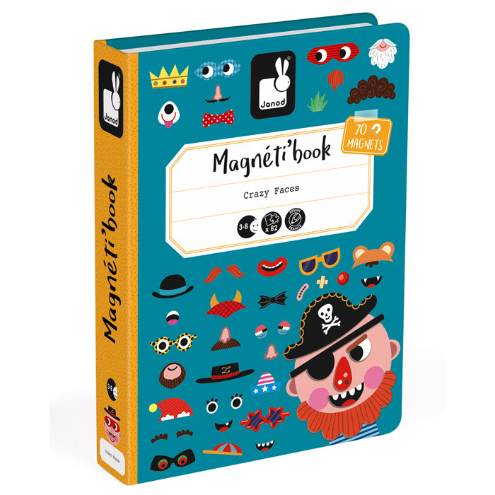 Who shall we create today? Use the 70 magnets to copy one of the 12 funny face cards or mix it up a bit and create your own funny face. Put together a grumpy pirate or maybe a jolly clown, the combinations are endless and hilarious! Once you have finished playing with the magnetic book place the cards and magnets inside the box and store it neatly on the bookshelf. It's just one of the fabulous Janod Magnetibooks to choose from!