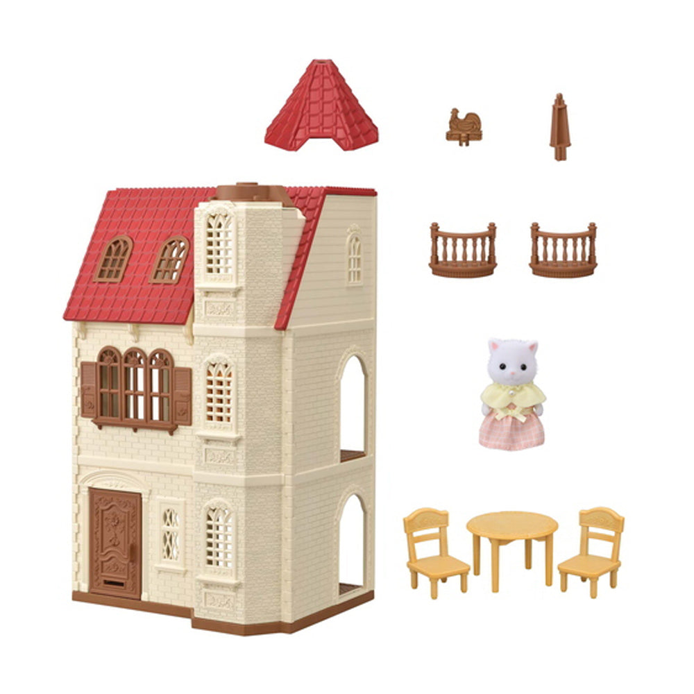 Includes: Main Unit, Three Floors, Fence x2, Weather Vane, Weather Vane Post, Pointed Roof, Persian Cat Girl, Table, Chair x2 (a total of 11 pieces).