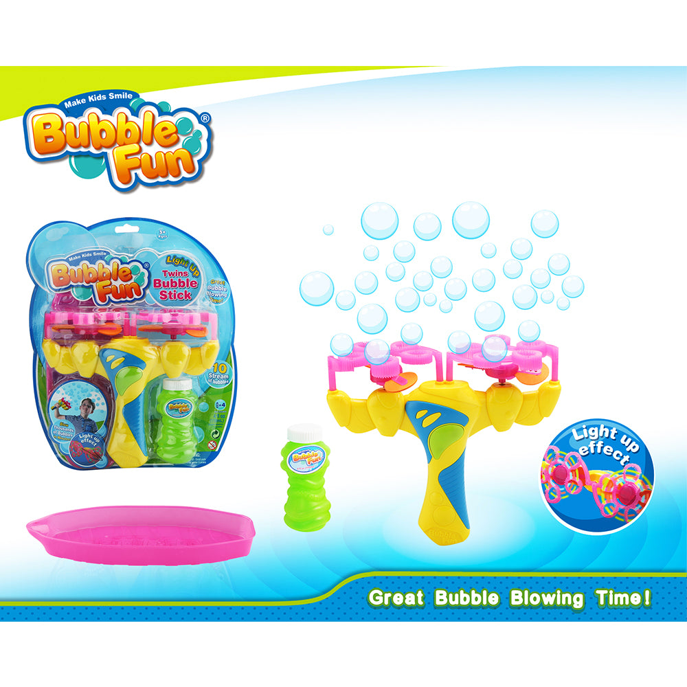 Bubble Fun电动双胞胎泡泡棒,包括2 个可在几秒钟内吹出数千个泡泡的超级吹气环,带有可点亮 LED 闪灯的泡泡扇叶,4盎司气泡液和一只盘子。每分钟最多可吹 6000 个气泡。