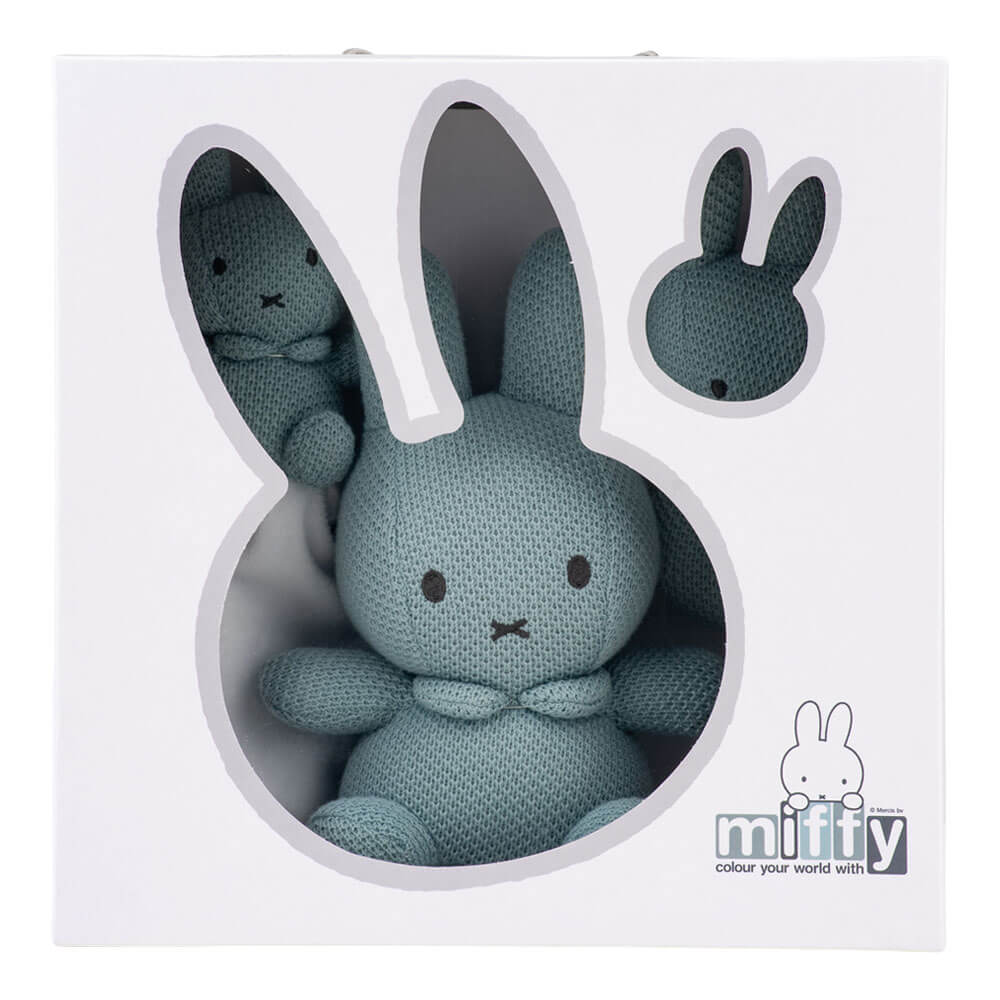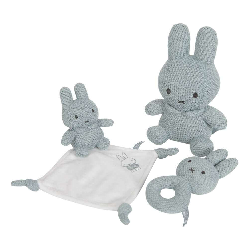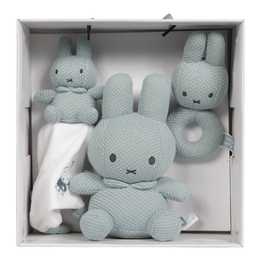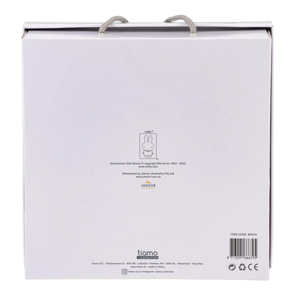 This beautiful Miffy gift set contains 3 popular formats across the Fun at Sea range, a perfect baby shower gift solution. Each set contains a Miffy 20cm soft toy, knotty teether comfort blanket and a soft rib fabric ring rattle. Presented in a white branded window box with acetate window cut-out to show off the gorgeous contents.