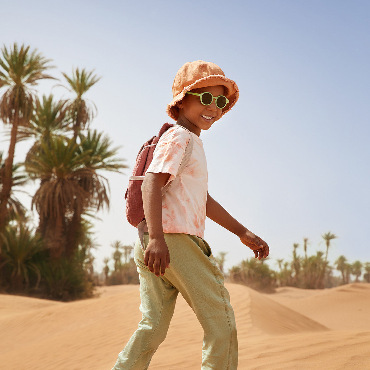 IZIPIZI Baby sunglasses have an ultra-resistant, soft frame with a “baby” bridge, and their straight arms allow them to follow the baby’s growth. They are BPA-free and hypoallergenic.