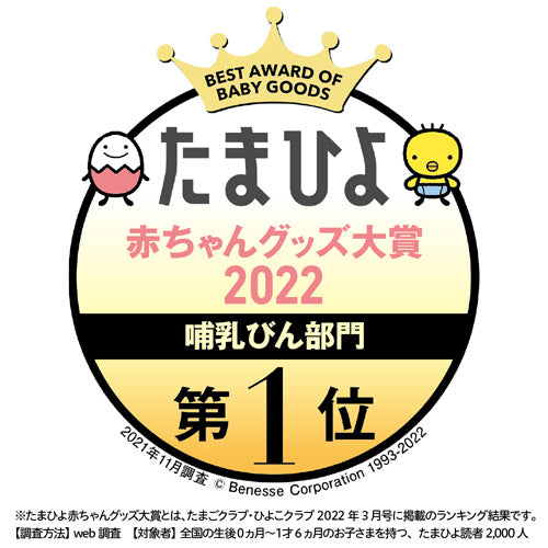 "Tamahiyo Baby Goods Award" 2022 / 1st place in the baby bottle category"Mother's Selection Award" 2021, selected by mom's voice