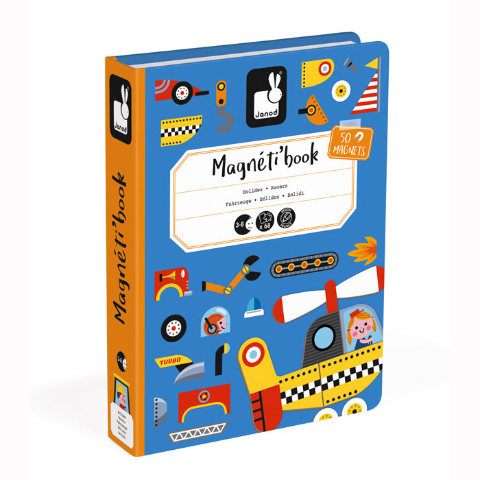 The Racers Magnetibook allows you to create different vehicles using the magnetic pieces.