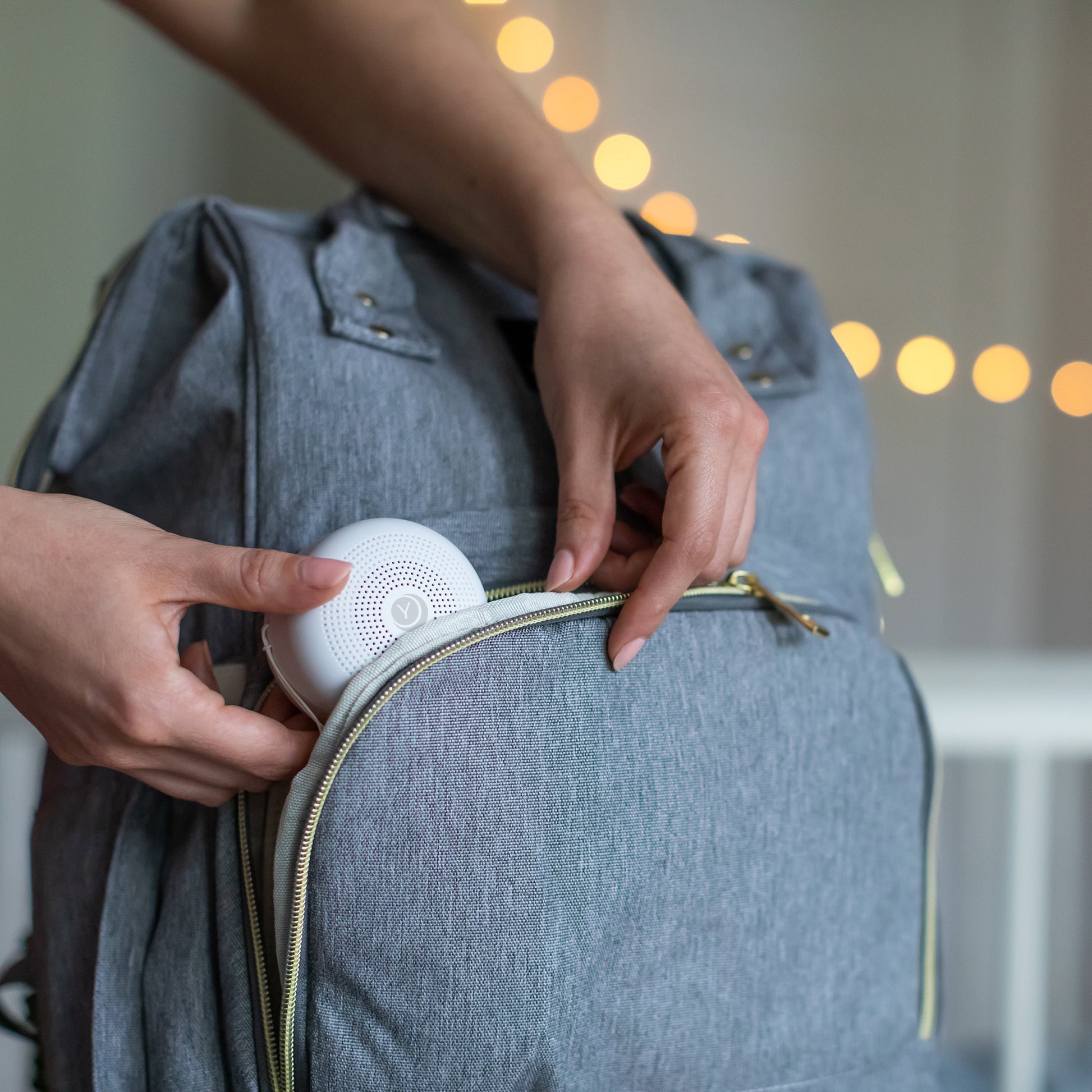 Weighing in at 140grams and no larger than the palm of your hand, the Travel Mini features a USB rechargeable battery and lanyard, making it perfect for at-home usage in your bedroom or nursery, travel, and on-the-go. Fits perfectly in handbags, suitcases and nappy bags!