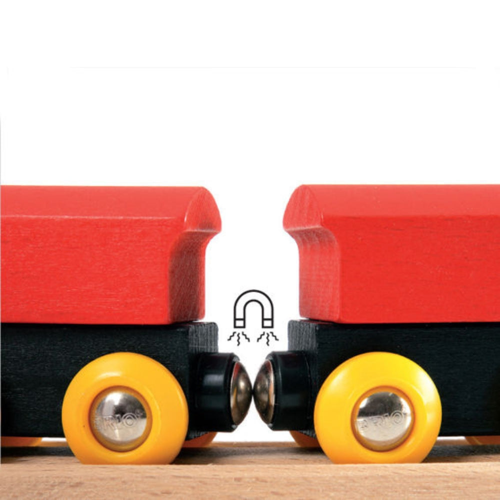 A classic starter set for the 2 year+ child with all wooden details. Take the classic inspired engine out on an adventure along the tracks. Stop by at the all wooden station and continue along the tracks passing by trees and a crossing bridge. Lots of fun for the youngest drivers!
