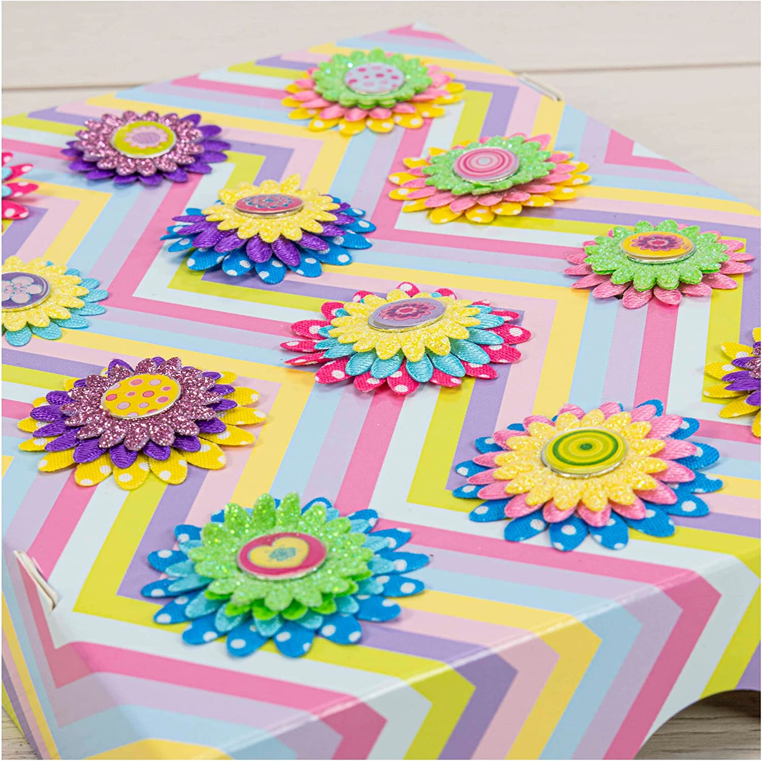 Make and wear 12 fab flower rings using fabric flowers. Layer up the flowers and finish with coloured stickers and dome stickers for a 3D look.