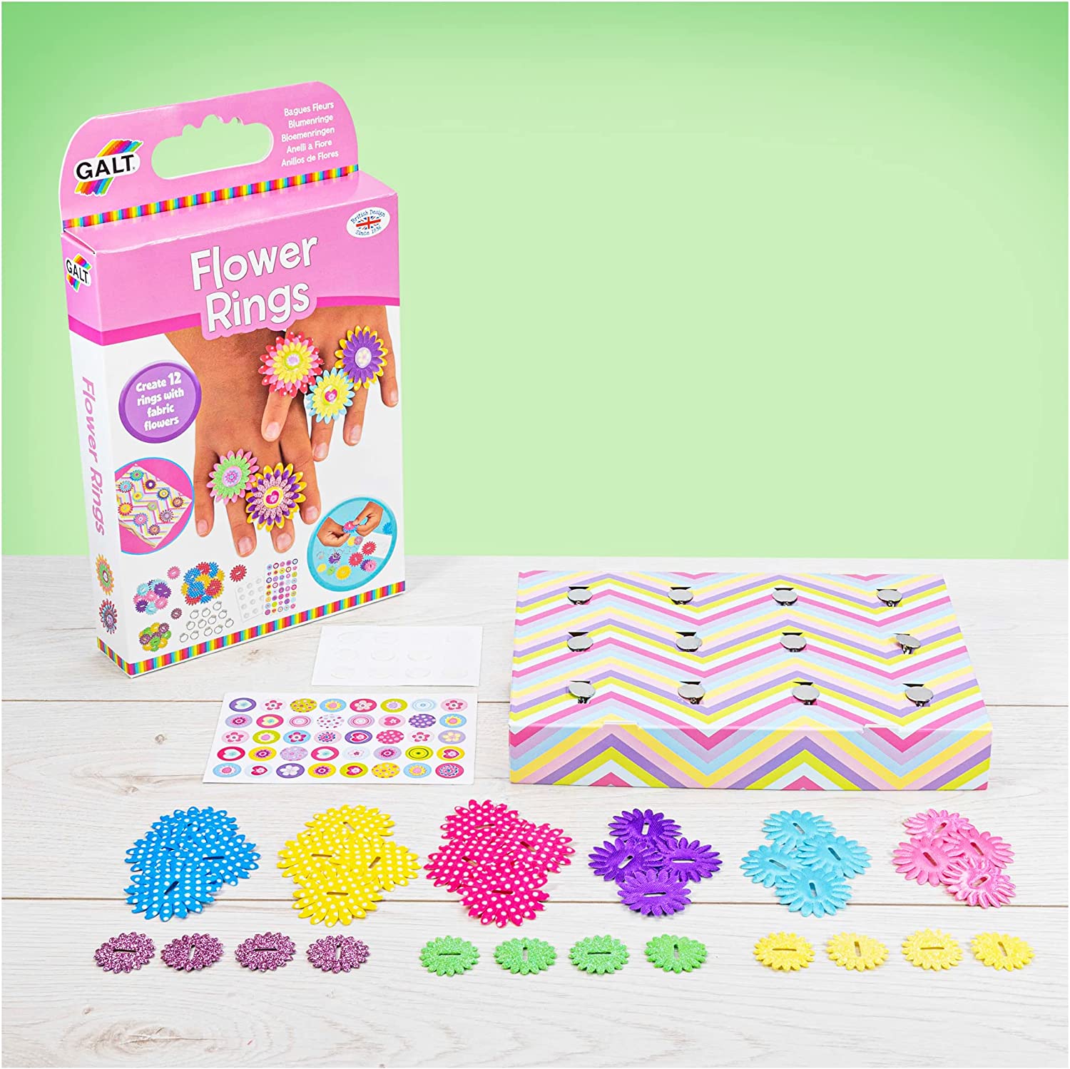 Includes 12 ring findings, 12 large spotty flowers, 12 coloured medium flowers, 12 small sparkly flowers, 12 epoxy dome stickers, sticker sheet, display tray and guide