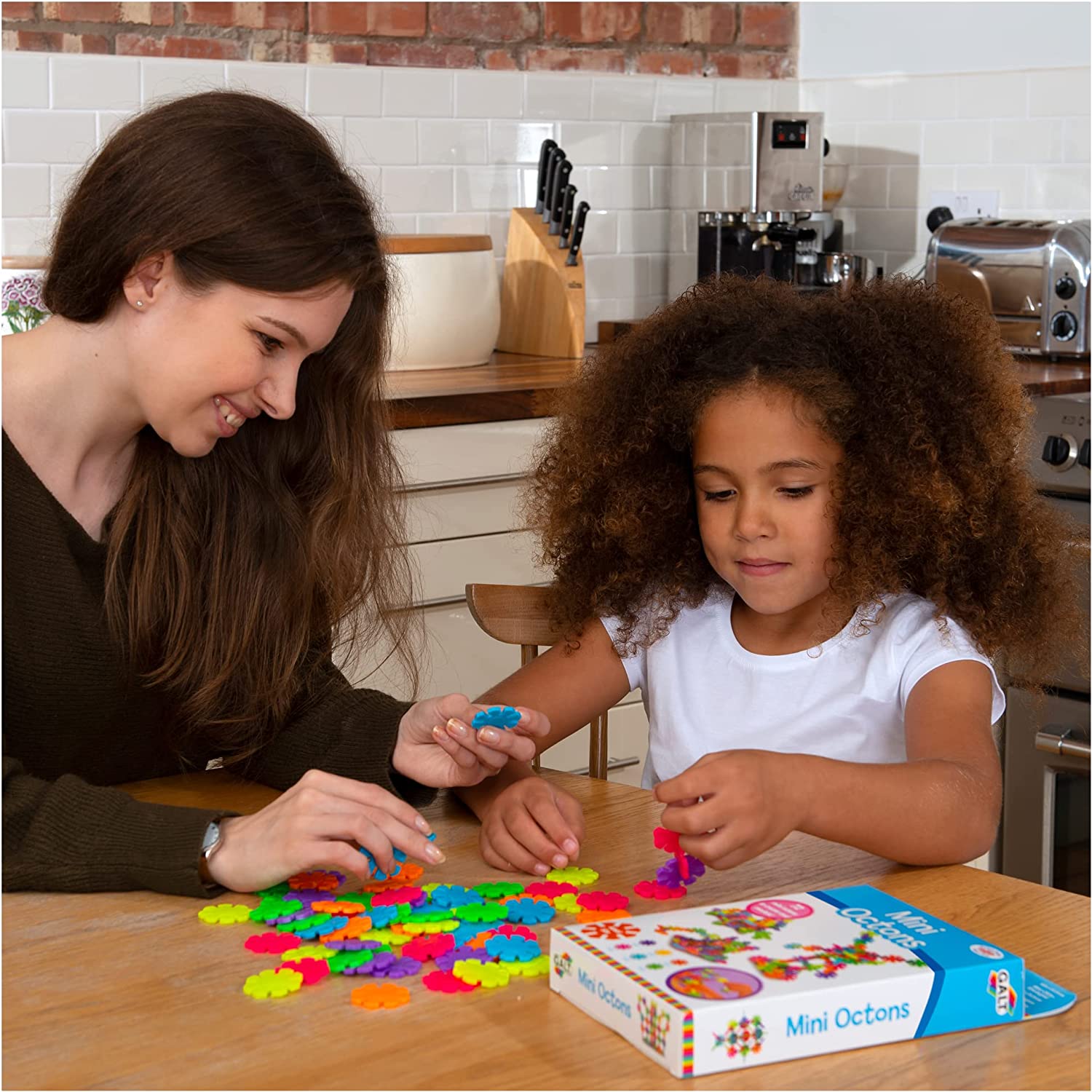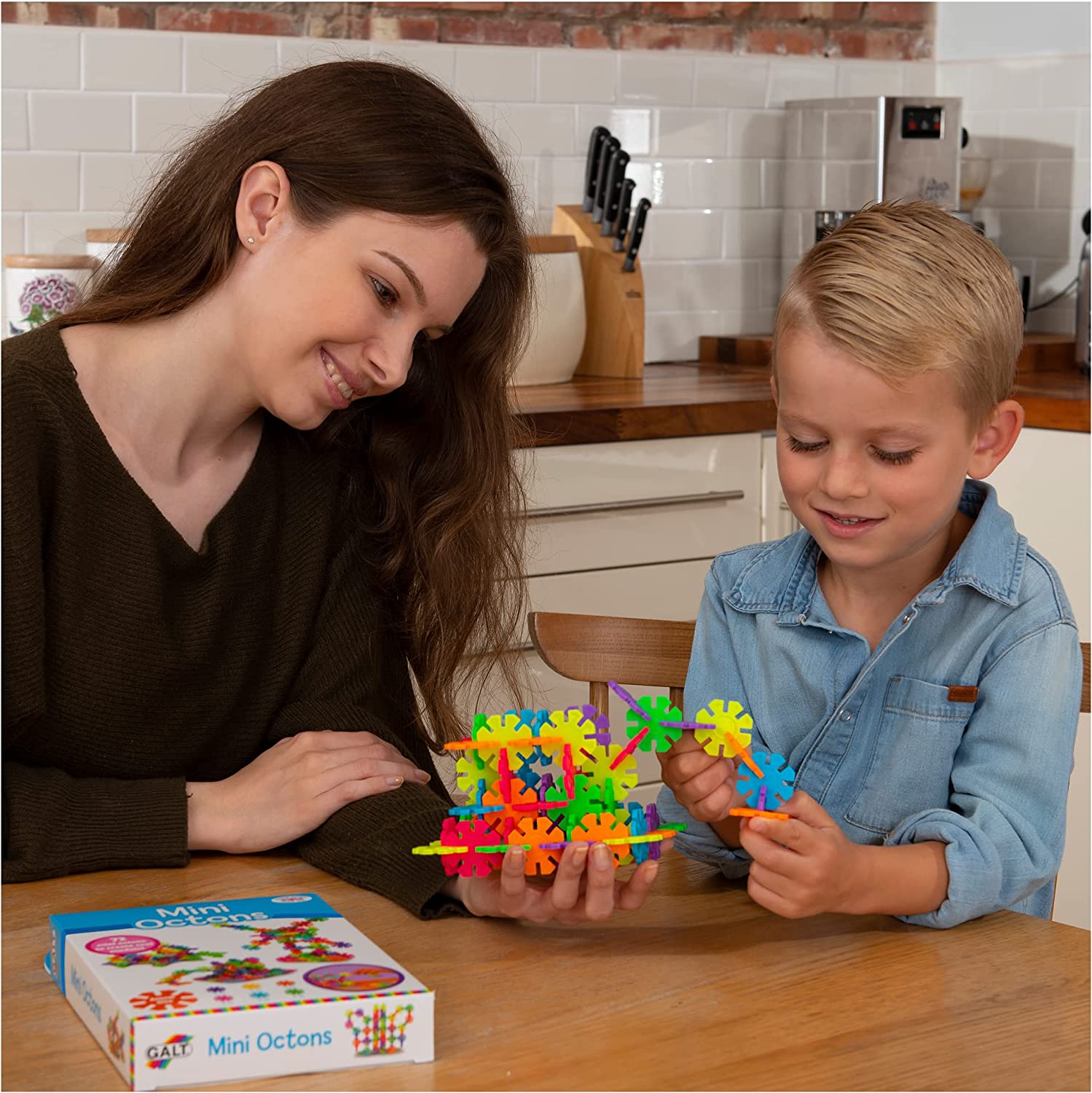 A mini construction kit, based on the ever popular Galt first octons. Made from tough plastic for durability, the mini octagonal pieces interlock easily to make a wide variety of exciting models. Create a windmill, giraffe, shark or digger following the step by step guide with 8 models to make or design your own creations. This mini octons kit with 72 pieces, size 3.3 x 3.3cm, is an ideal travel toy.