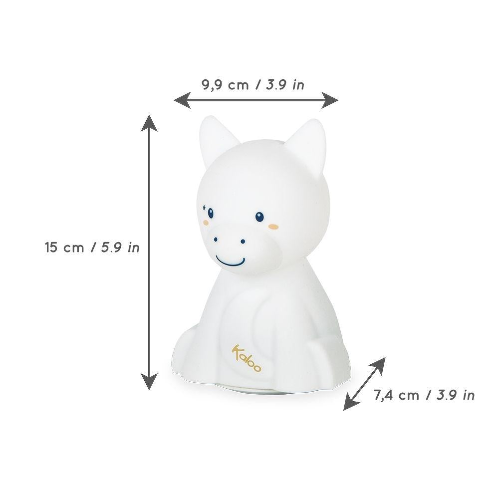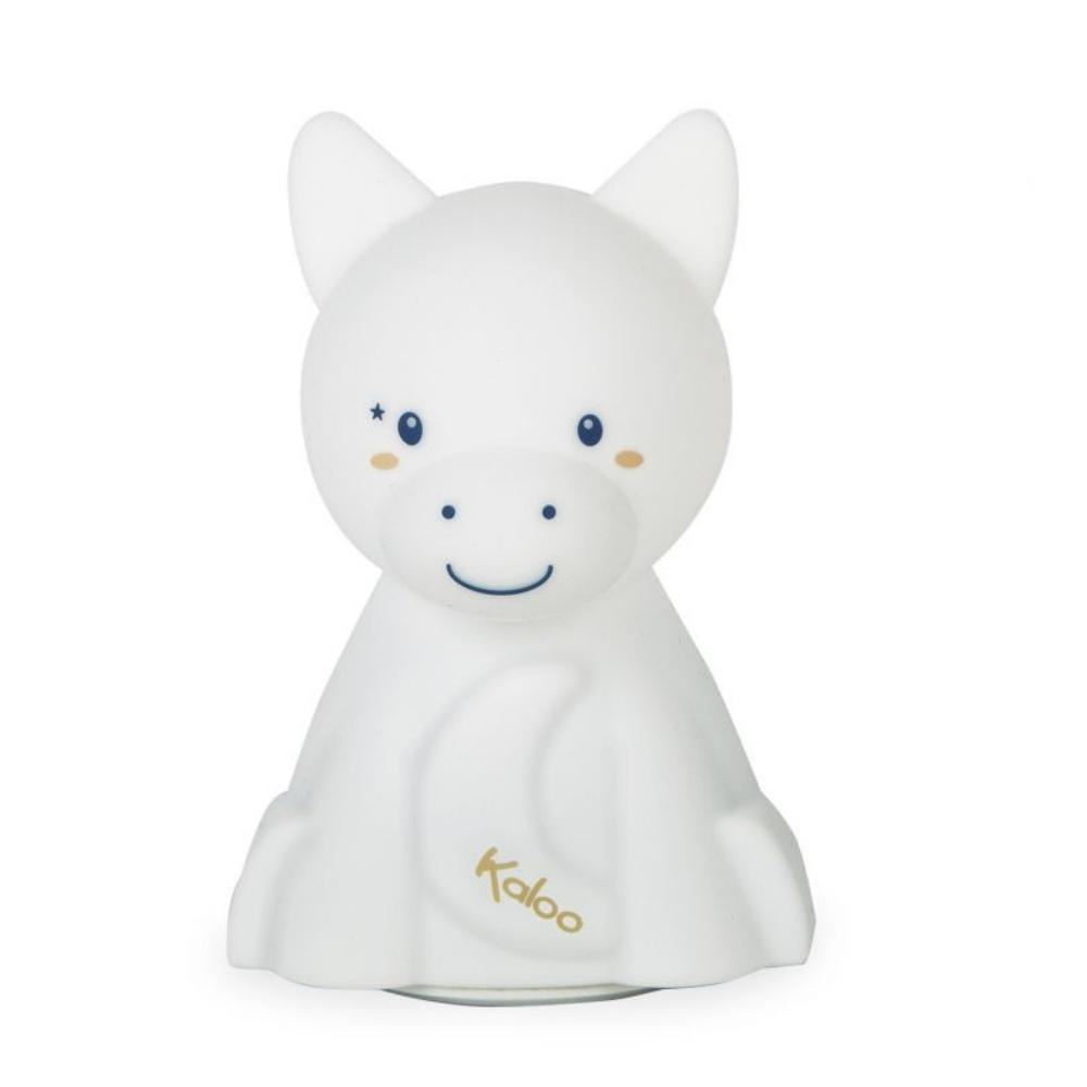 Provide comfort and security with the Donkey LED Night Light from Kaloo. Made of soft silicone, the wireless USB rechargeable light is touch sensitive so each time you give donkey a gentle pat, he will change from blue, to red, to white and back to blue, just choose your favourite colour. Presented in a window giftbox the Donkey LED Night Light lasts for around 6 hours and comes with it's own charging cable. Ideal for the littlies who need the light on to fall asleep, mum and dad will love the soft glow too to stop things that accidently go bump in the night!