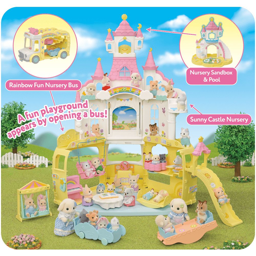 Combine with the Rainbow Fun Nursery Bus and Nursery Sandbox & Pool (sold separately) to make a nursery that looks like a big castle.